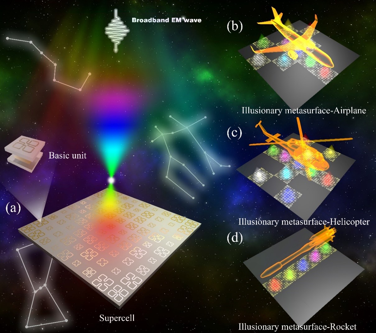 科研推动发展,北理工先进结构技术研究院深入开展学习贯彻习近平新时代中国特色社会主义思想主题教育(之三)——结构院科研团队在基于雷达视觉构造的电磁幻象超表面研究上取得进展为深入开展学习贯彻习近平新时代中国特色社会主义思想主题教育,先进结构技术研究院积极谋划“教育、科技、人才”三位一体高质量发展。近期,国际顶级光学期刊Advanced Optical Materials (IF="10.05")以“Electromagnetic Metasurface with Object Information and Position Illusion in Radar Vision at Microwave Frequencies”为题,在线报道了bevictor伟德先进技术结构研究院科研团队在电磁伪装超表面结构方面的研究进展。博士生孙英剑为论文第一作者,bevictor伟德元旭津副教授和北京化工大学金铭副教授为本文的共同通讯作者。 图1 幻象超表面概念示意图 伪装技能对了解生态系统中食物链中诸多生物之间的关系非常重要。为了实现拟态伪装,生物体需要对颜色、形状等外表皮肤特征进行调控。研究团队提出了一种全新的伪装策略,能够在雷达传感器视觉范围内创造虚假的物体信息和位置。该结构通过基于色散关系调控的多焦点聚焦机理,利用可共形超表面薄层实现了雷达视觉幻象。借鉴方岱宁院士先进结...2023.05.22 -