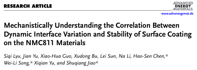 本研究基于颗粒EIS、原位气体监测及固相组分及浓度分检测联用分析方法,从颗粒-极片-电池多层级解析不同纳米包覆结构对NMC811正极材料稳定性影响机制,提出的Al2O3和硼化物均匀结构包覆能够有效提高NMC811界面稳定性,现有的方法和对纳米结构排列与动态界面变化之间关系的解析将为设计和改性具有高稳定的NMC811正极提供新见解。在方岱宁院士提出先进结构技术表征与定量分析方法的引领下,团队将进一步揭示三元锂离子电池中多场耦合复杂科学问题,助力发展高稳定结构的电池技术。