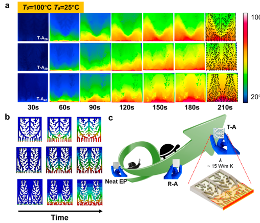 研究获得的仿叶脉Al2O3/EP复合结构的热导率高达14.65 W/m·K,较填料型复合材料提高269%、纯聚合物提高5585%,且具有良好的冷却循环性能、绝缘性和良好的散热性能。