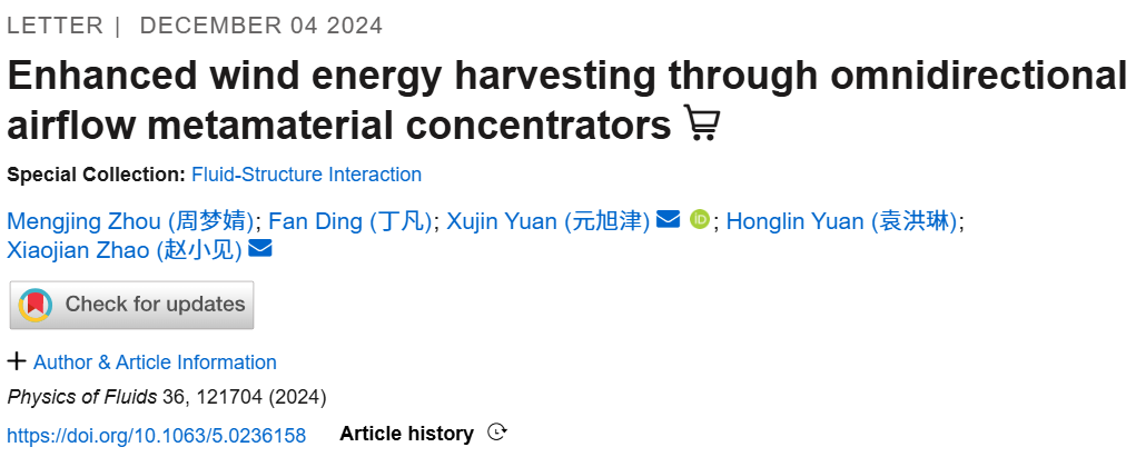 原文标题:Zhou, M., Ding, F., Zhao, X., Zhou, M., Ding, F., Yuan, X., Yuan, H., & Zhao, X. (2024). Enhanced wind energy harvesting through omnidirectional airflow metamaterial concentrators. Physics of Fluids., 36(12). https://doi.org/10.1063/5.0236158