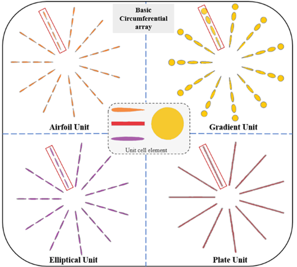 该全向阵列式结构采用了一种受超材料原理启发的新型复杂梯度结构,结合不同的基本单元的组合形成环向集流结构。并对结构进行了仿真验证,通过仿真分析与计算,团队最终确定了一种最优设计方案,其风能捕获效率较传统设计提升了360%。