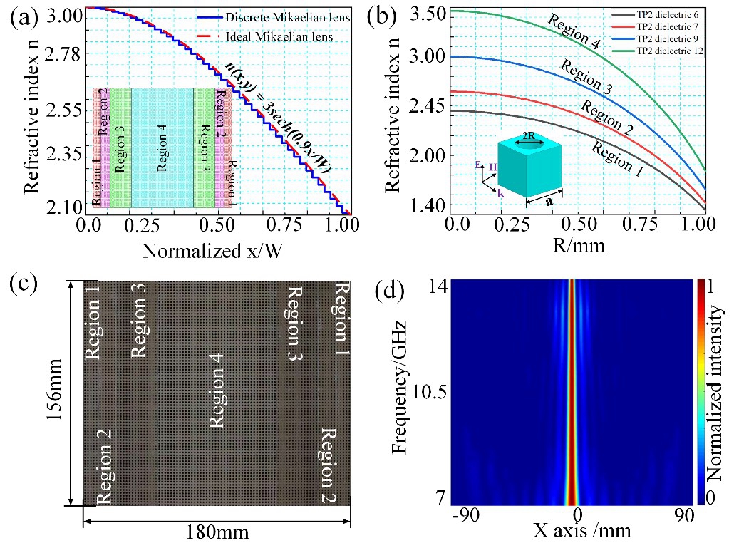 方岱宁院士团队在结构型微波透镜方面的研究进展2021年3月18日,国际顶级光学期刊Laser & Photonics Review(IF=10.65)以“Conformally Mapped Mikaelian Lens for Broadband Achromatic High Resolution Focusing”为题,在线报道了bevictor伟德先进技术结构研究院方岱宁院士团队在结构型宽带高分辨聚焦微波透镜方面的研究进展。博士生陈锦为论文第一作者,陈明继副研究员为本文的共同通讯作者。 大数值孔径无色差高分辨聚焦透镜在高分辨成像、高精度光刻等领域具有重要的工程应用。如何设计制造宽带无色差高分辨率透镜是光学与微波领域共同关注的问题之一。研究团队按照先进结构工程逆向设计的指导思想,通过保角变换光学理论,推导出聚焦点在边界对称轴处的四分之一米卡良透镜折射率分布;并通过基元结构设计和精细加工实现了聚焦半径0.2λ水平的大数值孔径宽带高分辨聚焦微波透镜。 为提高聚焦点处聚焦精度,受到传统固体浸入式透镜启发,将聚焦点处设计为折射率较大的材料,能够提高透镜的聚焦性能,达到0.2λ的聚焦半径,如图1所示。得到折射率空间分布后...2021.04.06 -