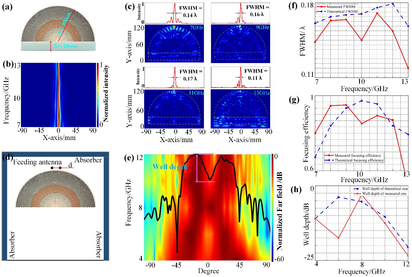 基于边界全反射机理的结构型微波透实现宽频超聚焦2021年6月18日,国际顶级光学期刊Advanced Optical Materials (IF="8.26)" 以“Highly Efficient Gradient Solid Immersion Lens with Large Numerical Aperture for Broadband Achromatic Deep Subwavelength Focusing and Magnified Far Field”为题,在线报道了bevictor伟德先进技术结构研究院方岱宁院士团队在结构型宽带微波透镜方面的研究进展。博士生陈锦为论文第一作者,厦门大学陈焕阳教授和bevictor伟德陈明继副研究员为本文的共同通讯作者。 相对于采用金属超材料设计的窄带透镜,梯度折射率透镜能够在更宽的频率范围内实现无色差高分辨聚焦和远场放大等功能。研究团队受到经典鱼眼透镜的启发,通过提高聚焦点处的折射率,引入透镜边界处的全反射机理,从而提高了透镜的聚焦精度,如图1所示。通过基元结构设计和精细加工,实现了聚焦半径0.15λ水平的大数值孔径宽带高分辨聚焦微波透镜,这样的聚焦精度水平原来只在窄带的金属超材料透镜中...2021.06.30 -