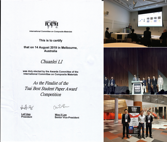先进结构技术研究院学子入围第22届国际复合材料大会(ICCM-22)“Tsai最佳学生论文”奖8月11日至16日,第22届国际复合材料大会(ICCM-22)在澳大利亚墨尔本会展中心举行,我校先进结构技术研究院2017级力学专业博士生李传檑提交的学术论文《Defect characterization and mechanical properties of multi-layer lattice structures》入围“Tsai最佳学生论文”奖。国际复合材料大会始于1975年,每两年召开一次,由国际复合材料委员会主办(ICCM),是全球复合材料领域历史最长、规模最大、最具权威的学术研讨会。 “Tsai最佳学生论文”奖设立于2013年,以“复合材料之父”Stephen Tsai教授命名,奖励给每届ICCM会议上的最佳学生论文。本届会议通过复合材料领域国际著名专家的推荐和评选,仅有来自帝国理工学院(英国)、南安普顿大学(英国)、东京大学(日本)、亚利桑那州立大学(美国)、哥伦比亚国立大学(哥伦比亚)、皇家墨尔本理工大学(澳大利亚)、bevictor伟德(中国)的7名学生入围决赛。 李传檑博士就读于我校力学专业,由方岱宁院士和雷红帅预聘助理教授联合指导,博士课题...2019.08.23